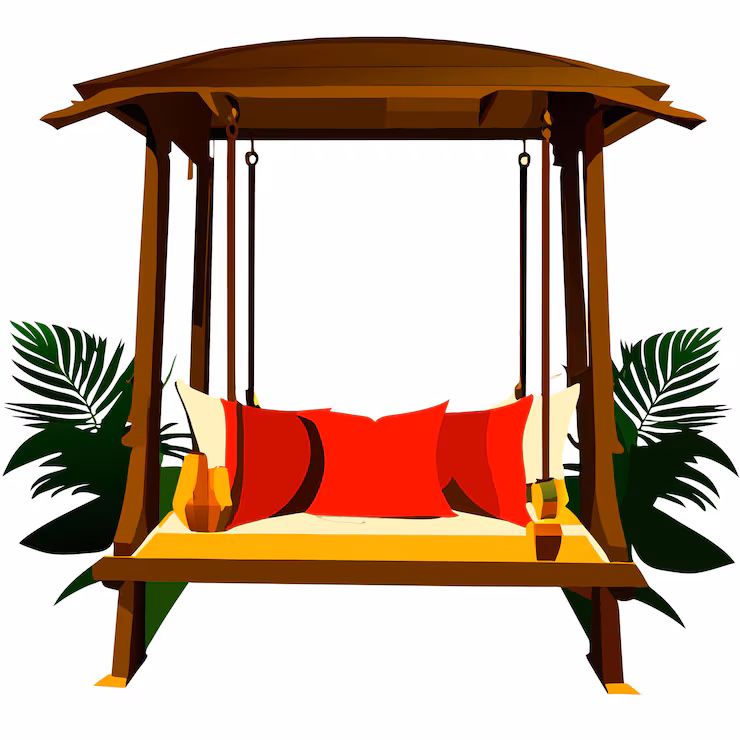 Beautiful pergolas with comfortable swings for guests to relax and unwind.